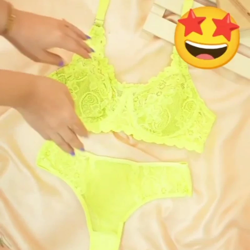 ست شورت و سوتین دانتل اعلا، فنر دار، مدل گوشواره ای سایز75،80،85،90 رنگ سبز فسفری، زرشکی و مشکی موجوده
