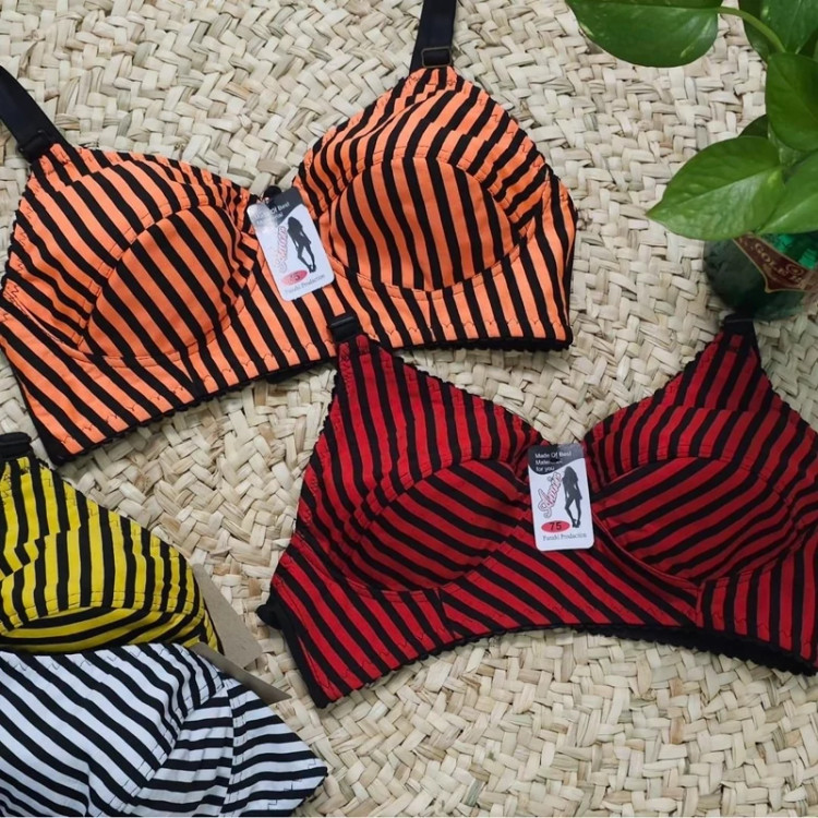 سوتین طرح راه راه سایز بزرگ زیرنخ ضدحساسیت با کیفیت