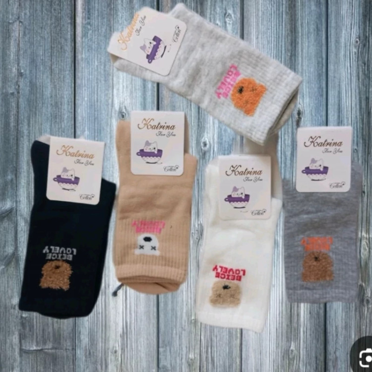 جوراب ساق بلند طرح خرسی رسو شده به سایز 36 تا 40 اندازه میشه